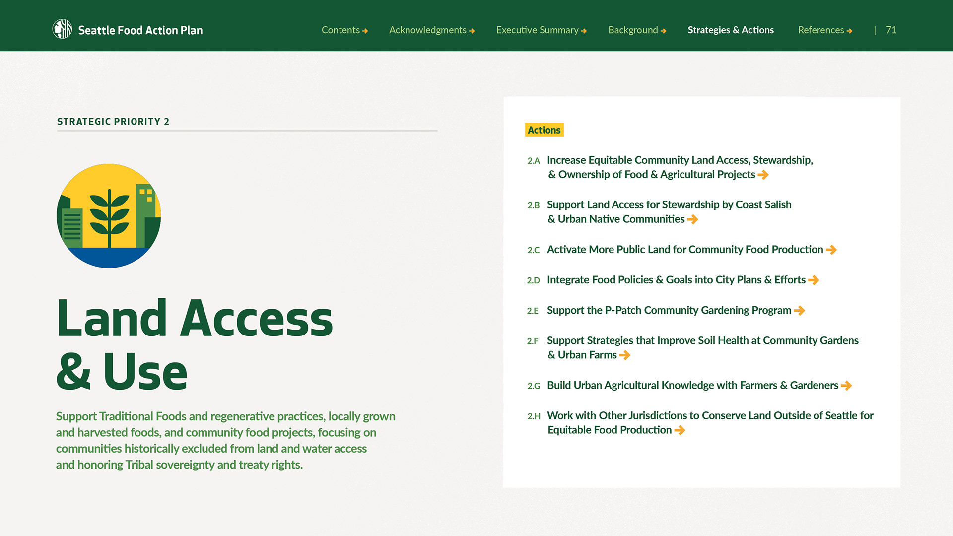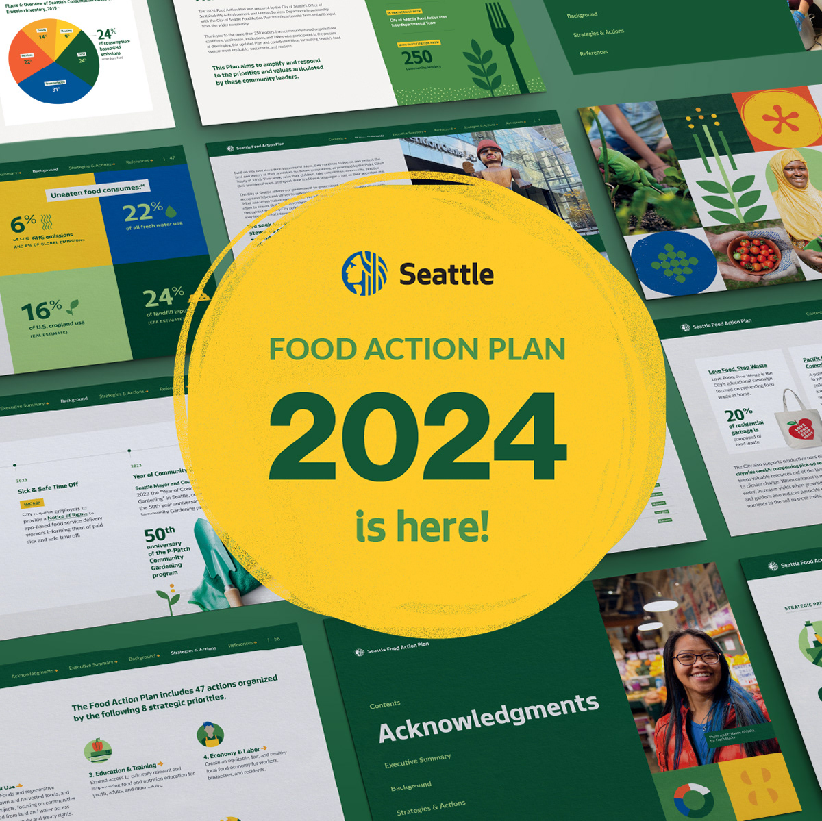 The City of Seattle commissioned a 100-plus page report highlighting its highly successful Food Action Plan. The ask was to make a complex policy plan clear, approachable, and digestible for both the average Seattle resident and policy makers.